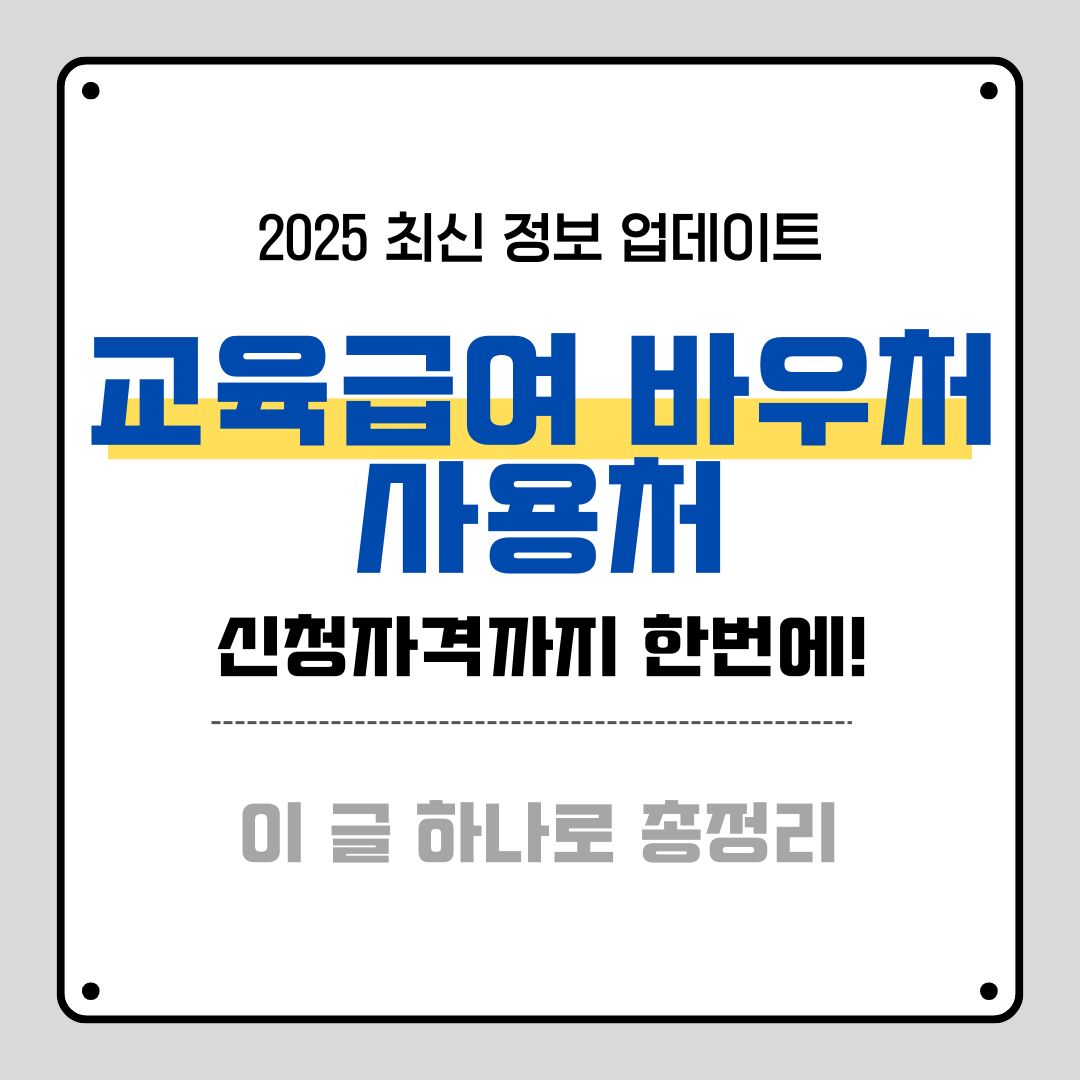 이 글에서는 2025년 교육급여 바우처 사용처, 신청자격, 지원금액, 신청방법, 실제 활용팁까지 한 번에 정리합니다. “내 아이의 학습권, 이번엔 놓치지 말고 제대로 챙기자!” 결심하셨다면, 지금부터 꼼꼼히 읽어보세요.